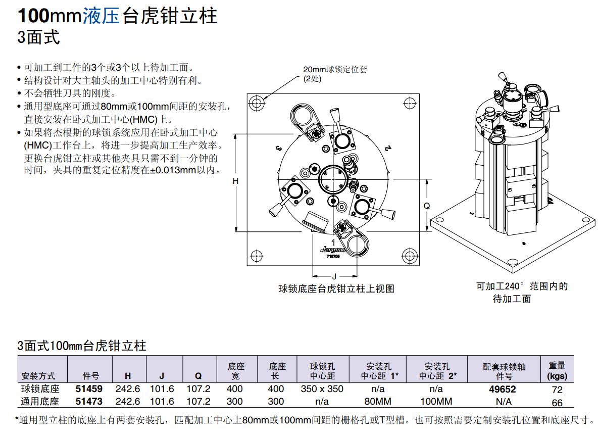 100mm液壓臺(tái)虎鉗立柱 3面式