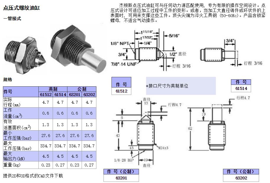 點壓式螺紋油缸-管接式