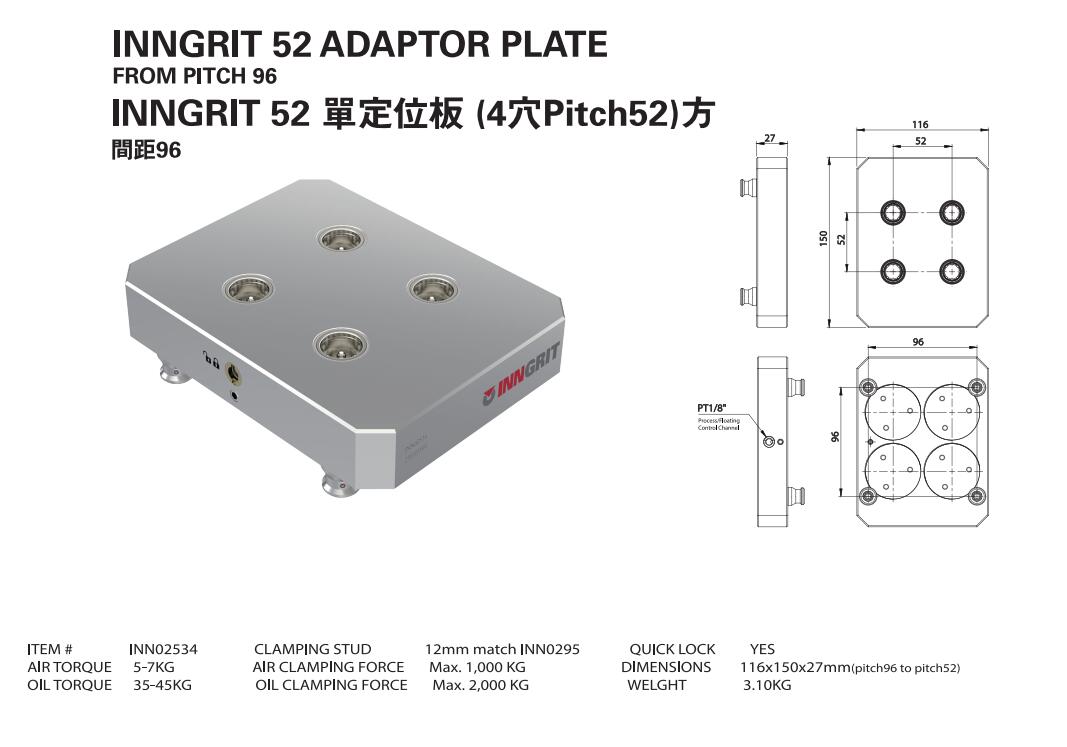 INN02534 單定位板 (4穴Pitch52)方-間距96