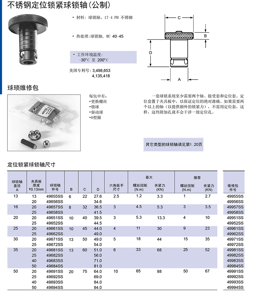不銹鋼定位鎖緊球鎖軸(公制)