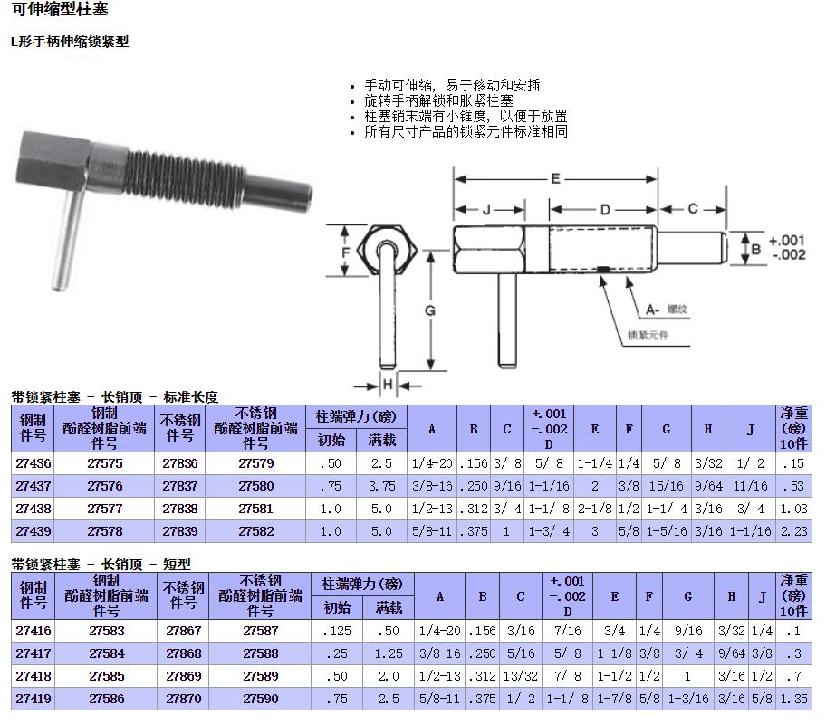 可伸縮型柱塞,L手柄型