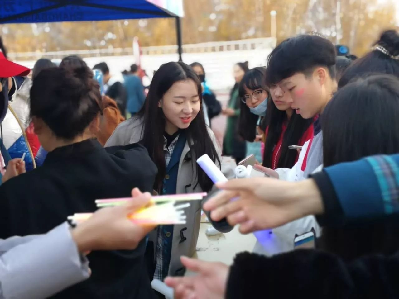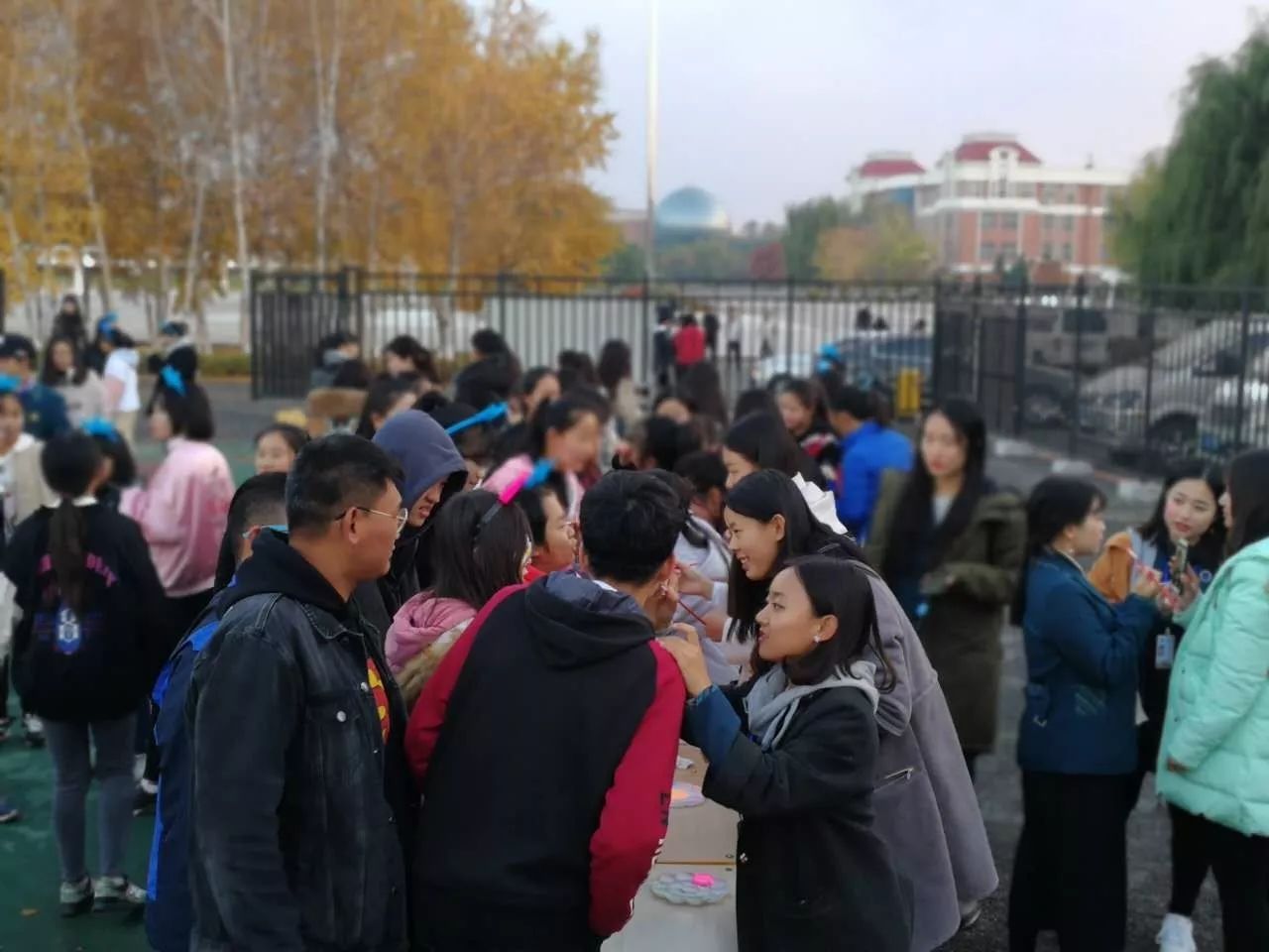 ? ? ? ?安全無害的熒光油漆,在同學(xué)們的臉上DIY青春的印記,每個人都是秋夜最亮的星。